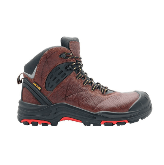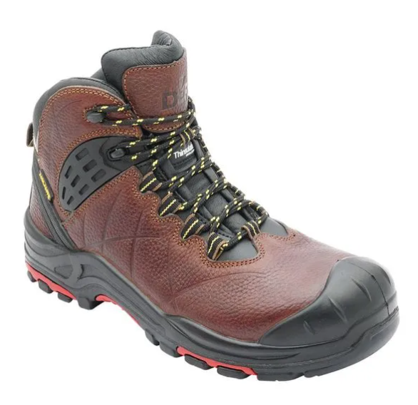 Botín Defender modelo Montego DF-500. Fabricación inyección directa al corte. Cuero chedron pull-up hidrofugado. Puntera de LCT (Light Composite Toe Cap). Entreforro aislante térmico Thinsulate®. Plantilla de armar antipunzonante no metálica