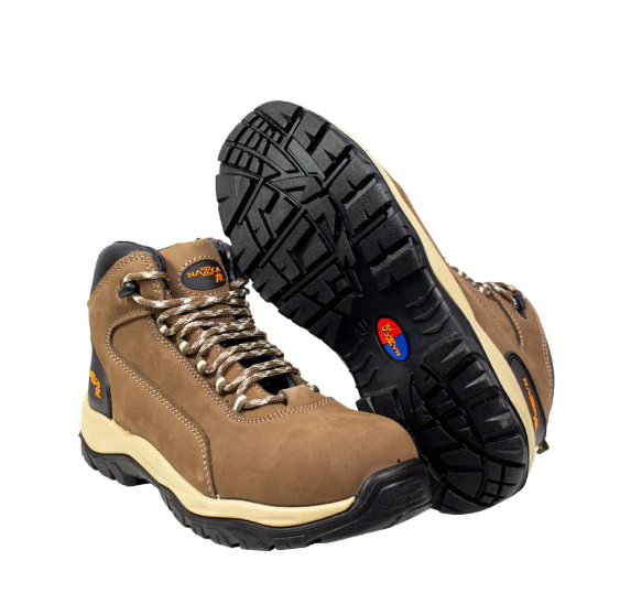 Botín Nazca XR09. Color café, Cuello acolchado, Cuero Nobuck, Ojetillos no metálicos – plásticos de alta resistencia, Puntera LCT (Light Composite Toe Cap) no metálica, Talón reforzado, Suela Antiperforante